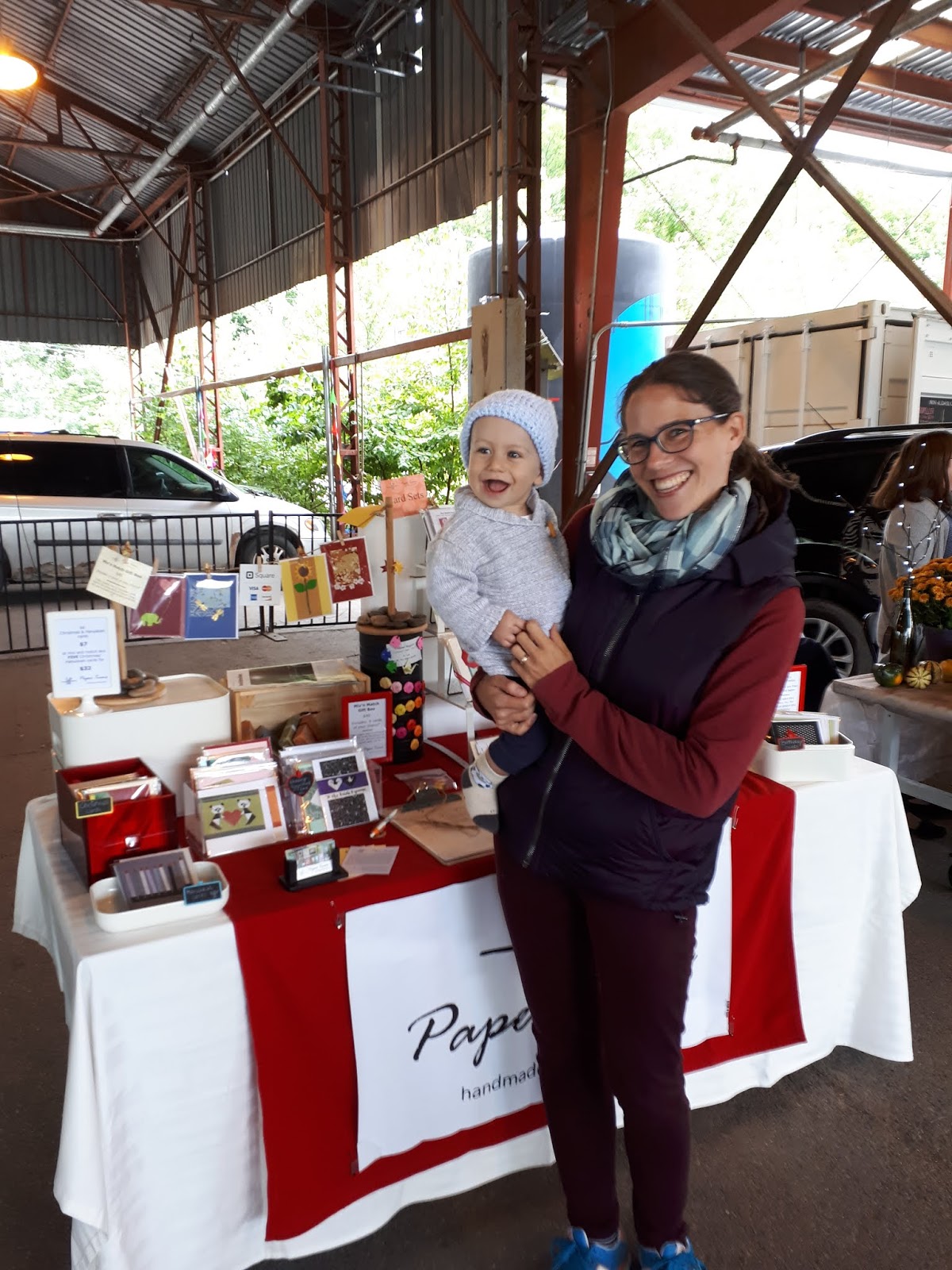 short video that gives you an idea of the creativity represented at the market (you'll see Paper Turns at 2:35min). The Makers' Market takes place twice a year, and the next one will be on September 30. Unfortunately, I won't be able to be back for that one, and if you look closely at the picture below, you'll know why. But hopefully again next summer!